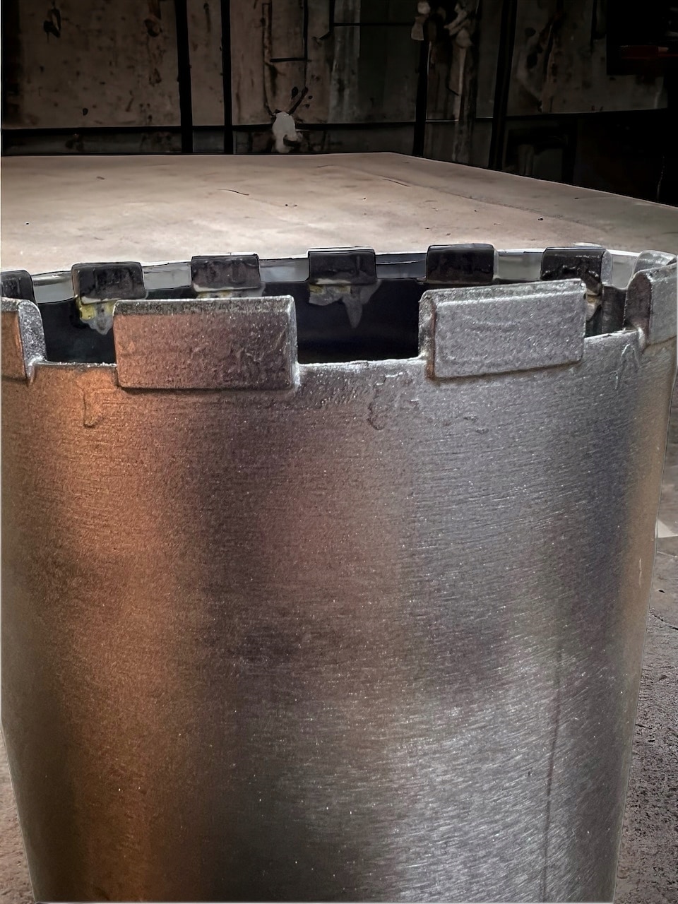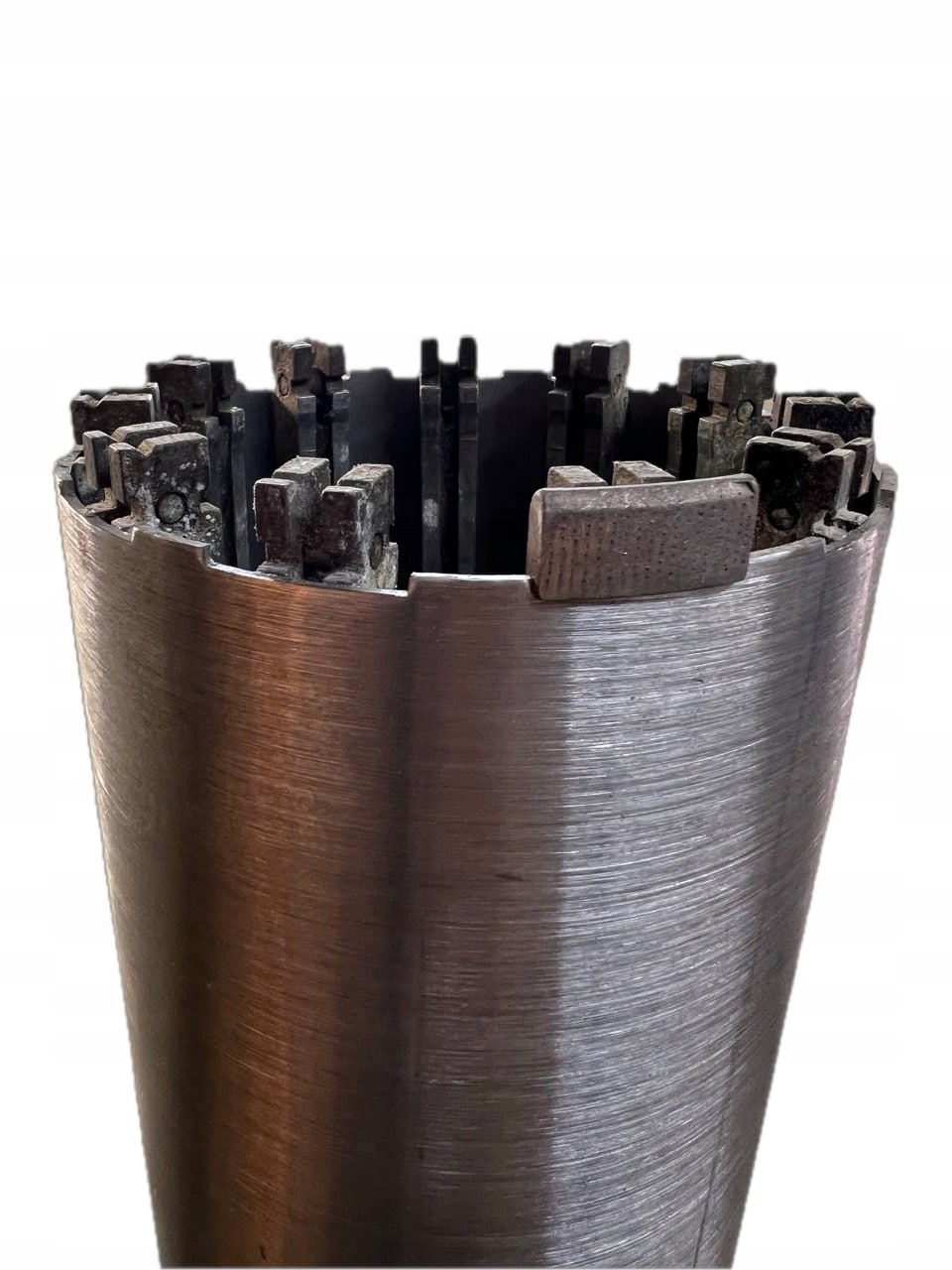 Segmenty diamentowe daszkowe o wysokości 10 mm zapewniają wydajne i szybkie wiercenie. Wiertła są rowkowane pod nowe segmenty – segment osadzany jest w wyciętych rowkach i lutowany wysokiej jakości elastycznym lutem srebrnym, co zwiększa trwałość i ogranicza ryzyko wyrwania.