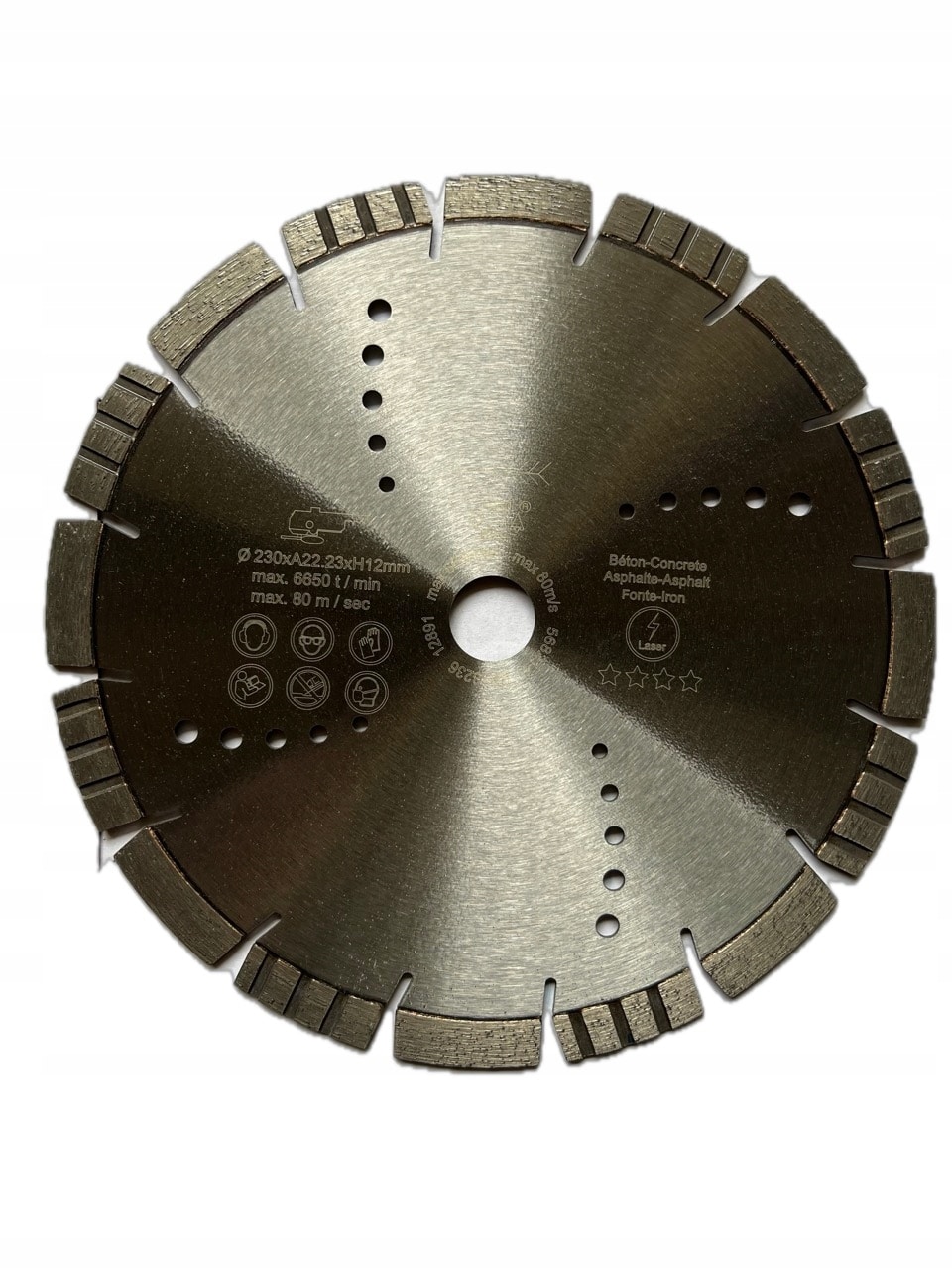 Tarcza specjalnie wyprodukowana do prac ogólnobudowanych premium. Trzy rodzaje segmentu beton, beton turbo, asfalt. «K otwory» poprawiają chłodzenie w czasie cięcia. Przecinarki drogowe i ręczne. Zastosowanie: beton, beton lekko zbrojony, asfalt, stal, miękki granit i materiały ogniotrwałe.