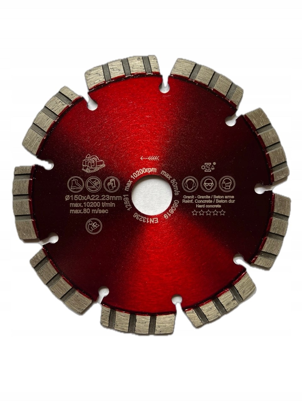 Segment o wysokości 10 mm spawany laserowo zapewnia wysoką trwałość i bezpieczeństwo podczas cięcia materiałów zbrojonych. Konstrukcja turbo umożliwia szybkie i agresywne tempo pracy przy zachowaniu stabilności.