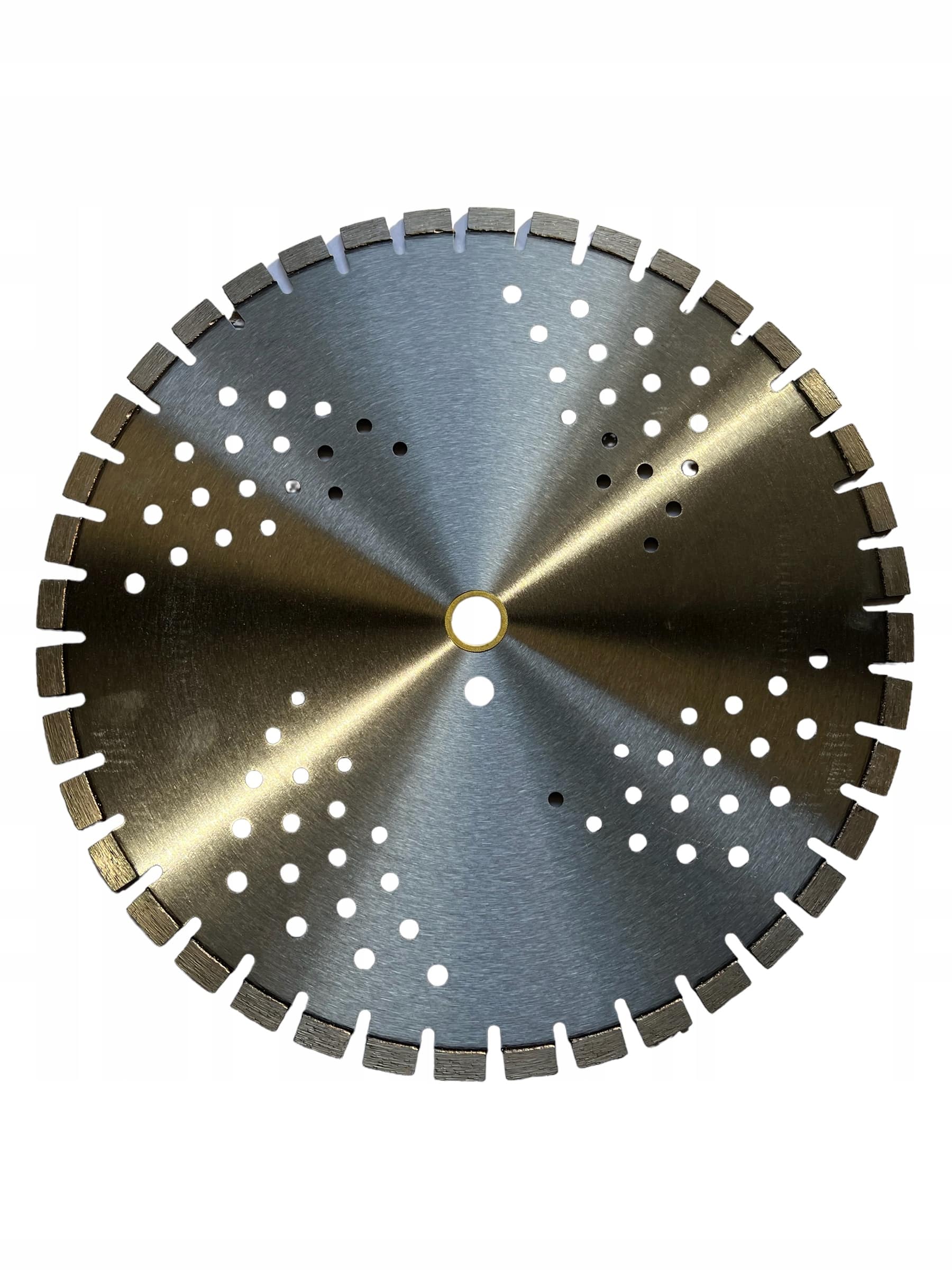 Tarcza 350 mm laserowa premium do cięcia granitu do przecinarek ręcznym i stolikowych. Krótkie segmenty zapewniają bardzo dobrą szybkość a otwory wentylacyjne lepsze chłodzenie przy cięciu na sucho.