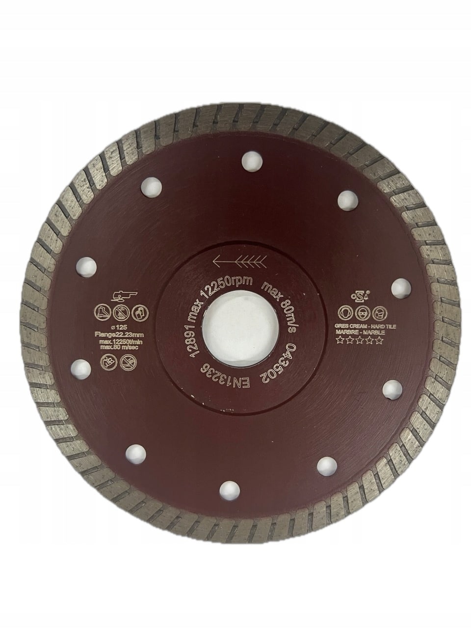 Tarcza diamentowa laserowa turbo, bardzo szybka, agresywna i wytrzymała do ceramiki, gresu, granitu, marmuru. Grubość 1,4 mm