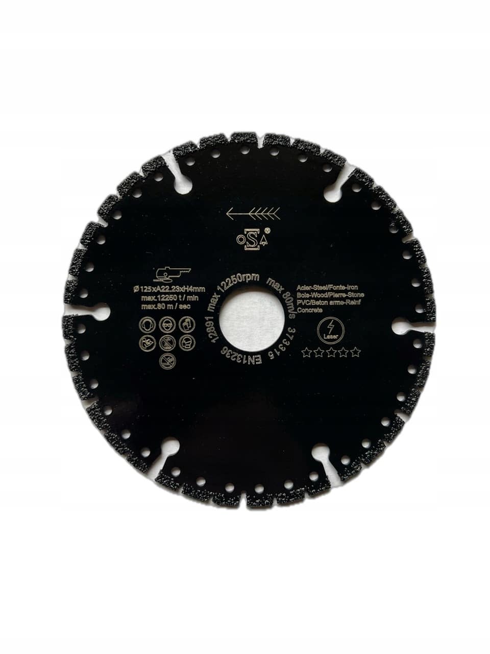 Tarcza wykonana w technologii vacuum brazed. Czysty segment diamentowy mocowany próżniowo, ziarna diamentowe są zawsze odsłonięte i ostre, tarcza jest bardzo szybka i agresywna. Jest to tarcza o szerokim zastosowaniu. Doskonale sprawdza się w losowych sytuacjach, kiedy nie ma możliwości doboru tarczy do materiału. Zastosowanie: Stal, żelazo, PVC, drewno, beton zbrojony, guma.